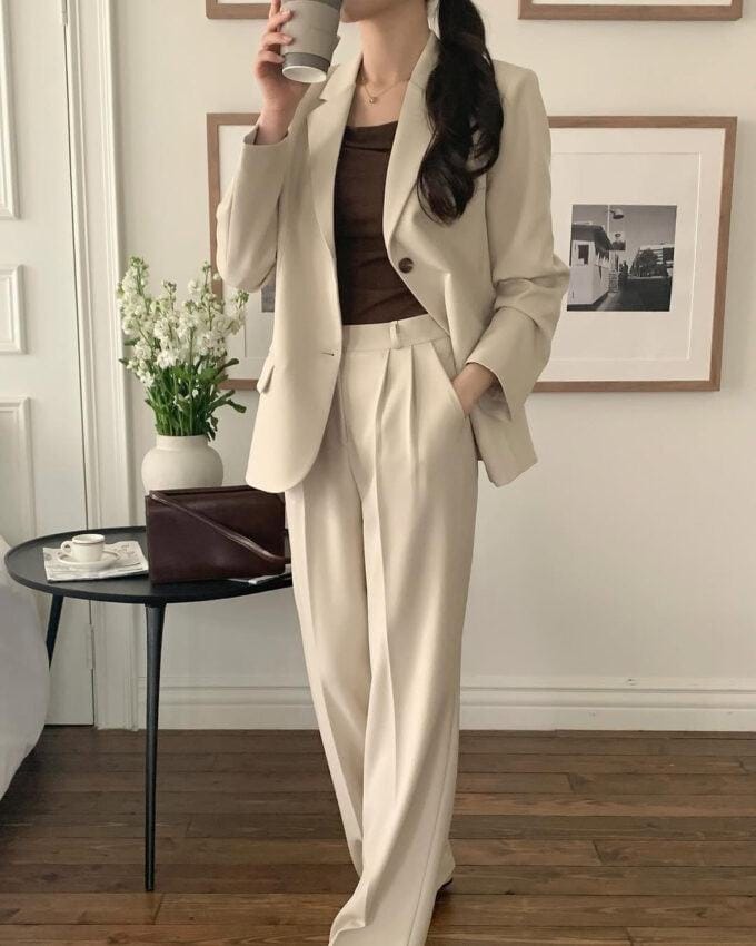 Blazer không cổ chính là “át chủ bài” của những cô nàng thích sự tối giản nhưng không kém phần thời thượng. Thiết kế này sẽ khiến bạn trông “sang chảnh” hơn bất kỳ kiểu blazer nào khác, đặc biệt khi kết hợp với áo sơ mi hoặc áo phông basic.