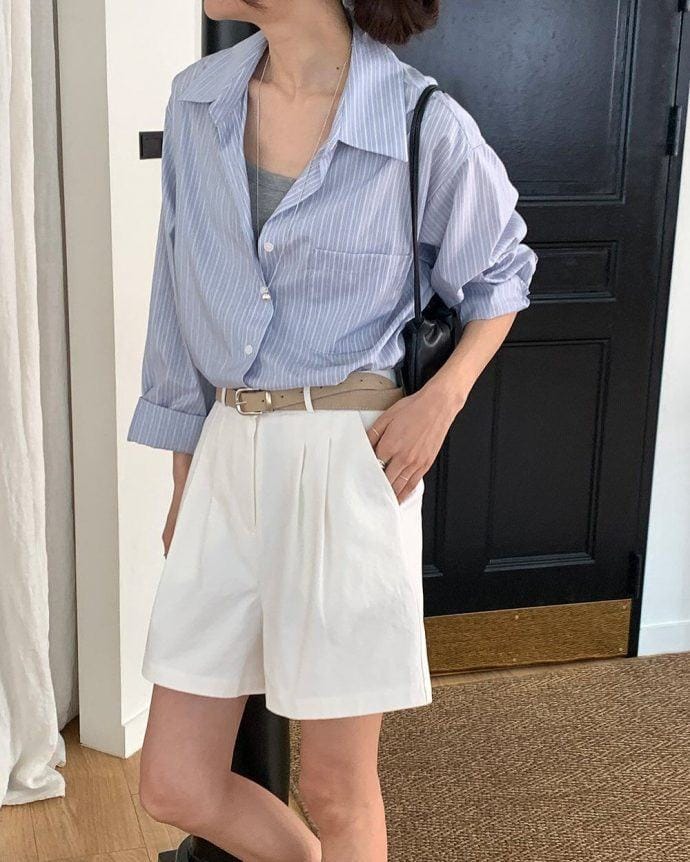 Các quý cô sành điệu tạo điểm nhấn cho phong cách mùa hè bằng những mẫu áo sơ mi kẻ tông màu xanh hoặc hồng. Chỉ cần kết hợp các thiết kế bắt mắt này với quần jeans, quần short trắng hoặc quần màu be, chị em sẽ có được tổng thể trang phục hài hòa.