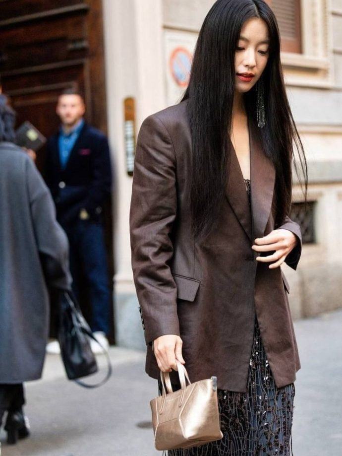 Kiểu tóc lửng layer kết hợp với mái thưa không chỉ giúp gương mặt nhỏ gọn hơn mà còn tạo nên vẻ ngọt ngào, trẻ trung. Đặc biệt, nhuộm màu nâu sẽ giúp chị em thêm rạng rỡ mà vẫn giữ được nét thanh lịch.