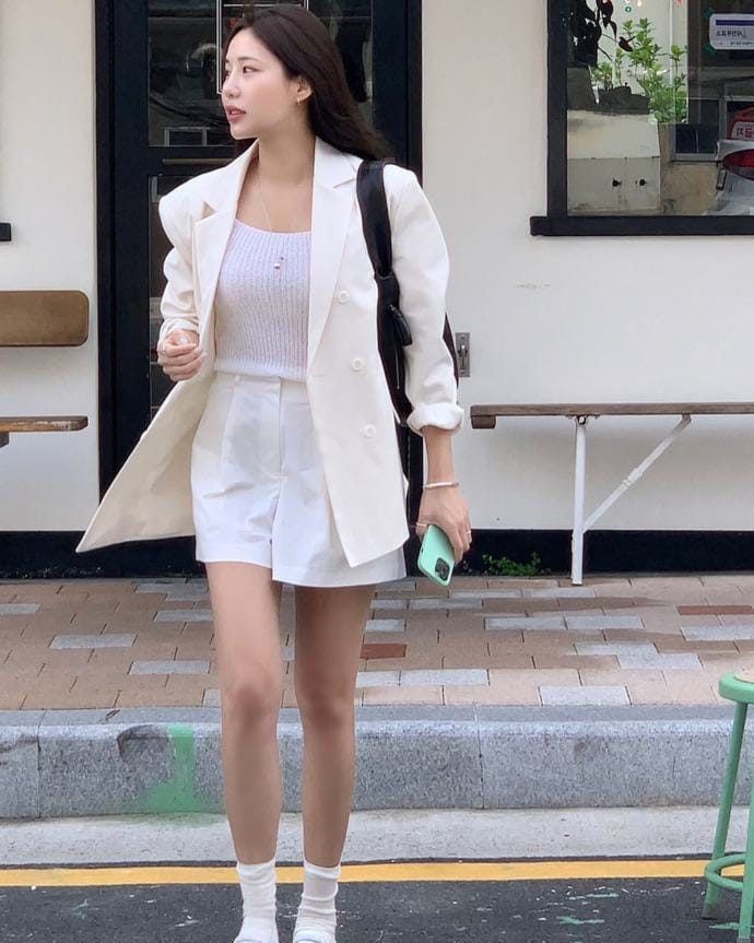 Màu trắng luôn là lựa chọn an toàn và hiệu quả. Trang phục màu trắng không chỉ giúp bạn trông trẻ hơn mà còn mang đến cảm giác mát mẻ, thoải mái. Áo blouse, chân váy bay bổng, hay quần short màu trắng đều là những item không thể thiếu trong tủ đồ mùa hè.
