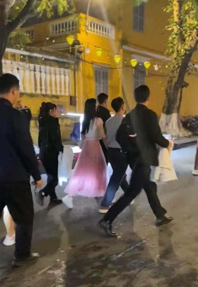 Phố cổ Hội An vừa chứng kiến một cảnh tượng hiếm có: Á hậu Phương Nhi và chồng thiếu gia Minh Hoàng xuất hiện trong một khung cảnh lãng mạn, tay trong tay dạo bước dưới ánh đèn lồng. Cô nàng diện chiếc váy hồng nhẹ nhàng, kết hợp với đôi giày thể thao năng động, tạo nên phong cách vừa sang trọng vừa thoải mái. Điều đáng chú ý là cả hai đều đeo khẩu trang kín mít, xung quanh là dàn vệ sĩ mặc vest đen nghiêm túc, tạo cảm giác như một cảnh trong phim hành động.