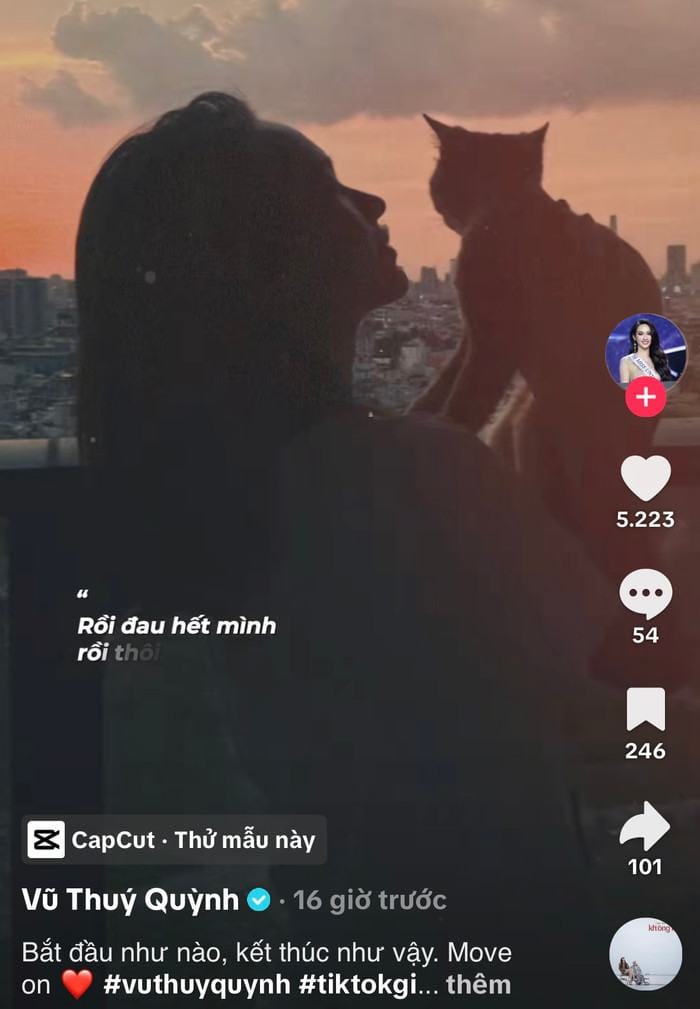 Không gian mạng xôn xao khi Á hậu Vũ Thúy Quỳnh bất ngờ chia sẻ đoạn video kèm bản nhạc buồn và dòng trạng thái đầy ẩn ý: “Bắt đầu thế nào, kết thúc như vậy. Move on”. Cụm từ “move on” như một lời tạm biệt, gợi lên sự kết thúc của một mối quan hệ, khiến người hâm mộ không khỏi băn khoăn.
