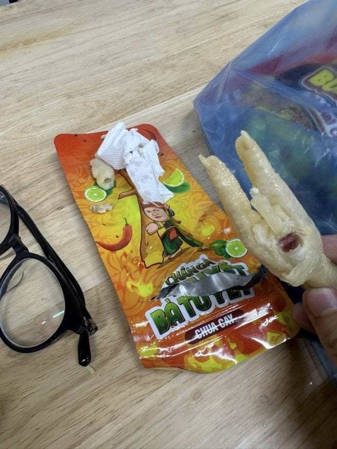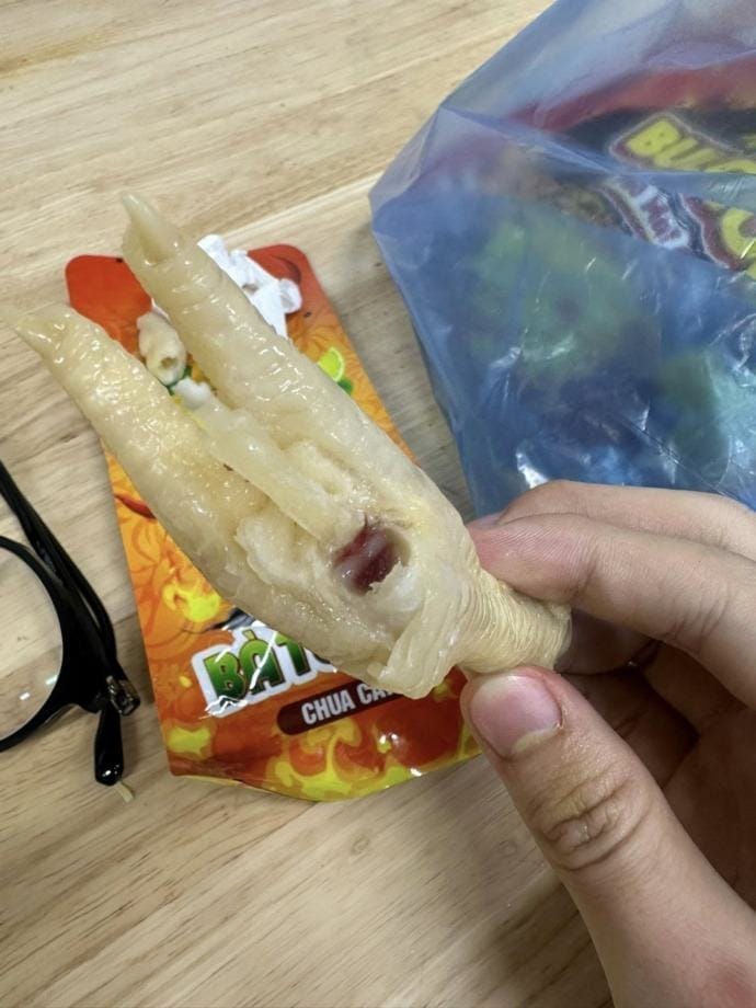 Chưa kịp lắng xuống, một khách hàng khác lại tố chân gà mua về còn màu đỏ bên trong, dấu hiệu chưa chín kèm mùi lạ. Tiếp đó, một sản phẩm khác bị phát hiện có sợi dây mảnh nối các miếng bánh, khiến dân mạng “toát mồ hôi”. Ăn Cùng Bà Tuyết hứa sẽ phản hồi chính thức, nhưng niềm tin của người tiêu dùng đã phần nào bị lung lay.