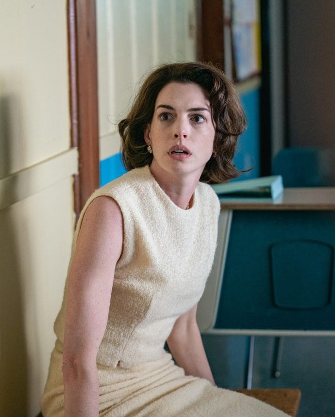 Với làn da mịn màng, không tì vết cùng kiểu tóc buộc đuôi ngựa đơn giản, Anne Hathaway trông như mới chỉ ở độ tuổi đôi mươi. Lối trang điểm nhẹ nhàng, tông hồng ngọt ngào càng tôn lên vẻ tươi tắn, rạng rỡ của cô. Tuy nhiên, chính diện mạo này đã dấy lên nhiều tranh cãi: Một số cho rằng nữ diễn viên đã can thiệp thẩm mỹ, trong khi số khác tin rằng đó là kết quả của lối sống lành mạnh và chăm sóc da kỹ lưỡng.