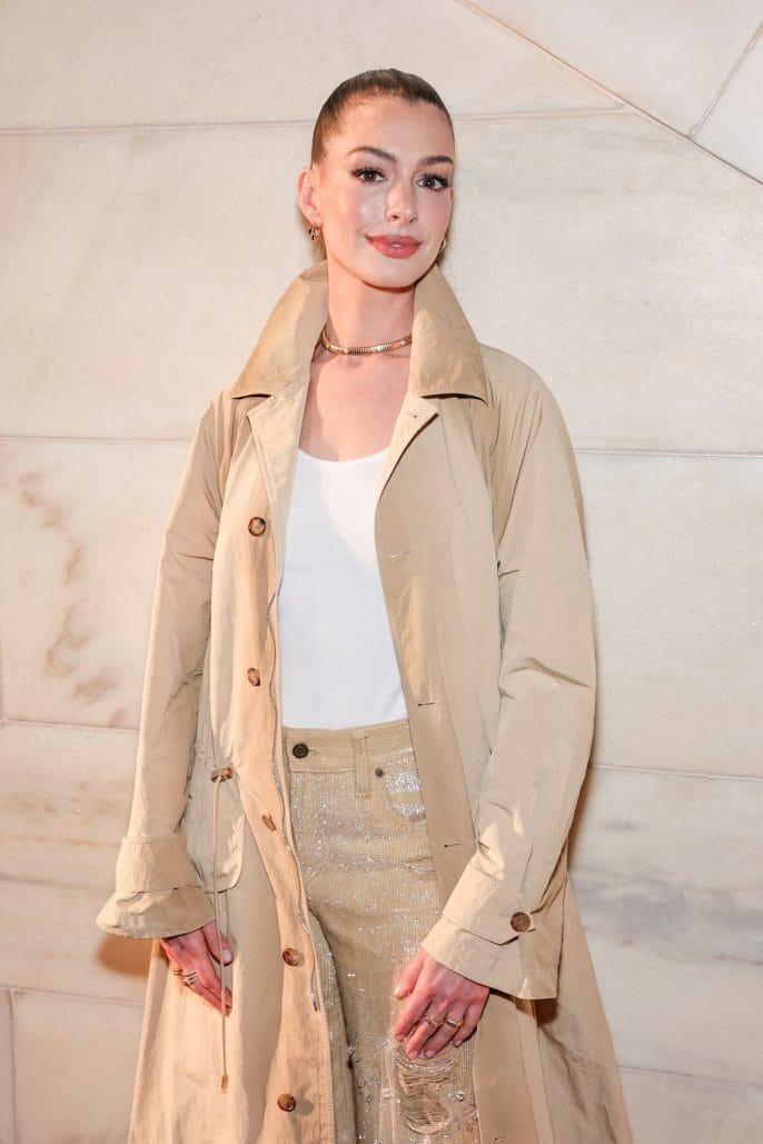 Theo PageSix, vẻ ngoài trẻ trung, xinh đẹp của Anne Hathaway đang trở thành chủ đề gây bàn tán sôi nổi khi nữ diễn viên ngồi hàng ghế đầu tại show diễn thời trang mới đây của thương hiệu Ralph Lauren. Sao phim Yêu nữ thích hàng hiệu xuất hiện tươi tắn, rạng rỡ với làn da mịn màng, không nếp nhăn. Lối trang điểm nhẹ nhàng, tự nhiên với tông hồng trong trẻo, ngọt ngào cùng kiểu tóc buộc đuôi ngựa khiến nữ diễn viên 8X thêm “hack” tuổi.