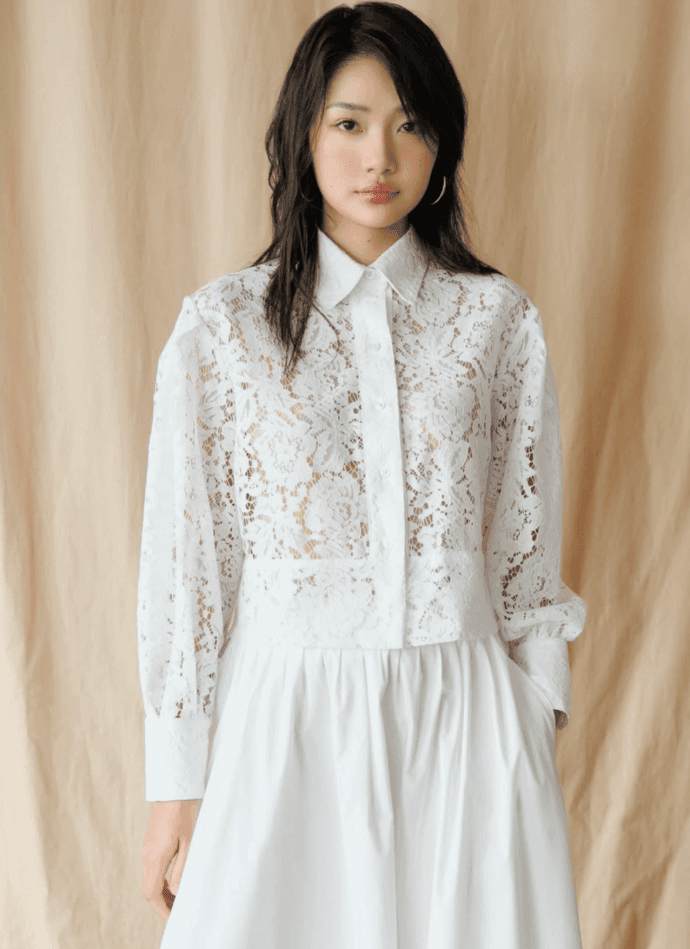 Chất liệu ren tinh tế với những đường nét họa tiết tỉ mỉ không chỉ tôn lên vẻ nữ tính mà còn ẩn chứa một chút cá tính mạnh mẽ. Chiếc áo sơ mi trắng giờ đây không chỉ là trang phục công sở mà còn là tuyên ngôn thời trang của người phụ nữ hiện đại.