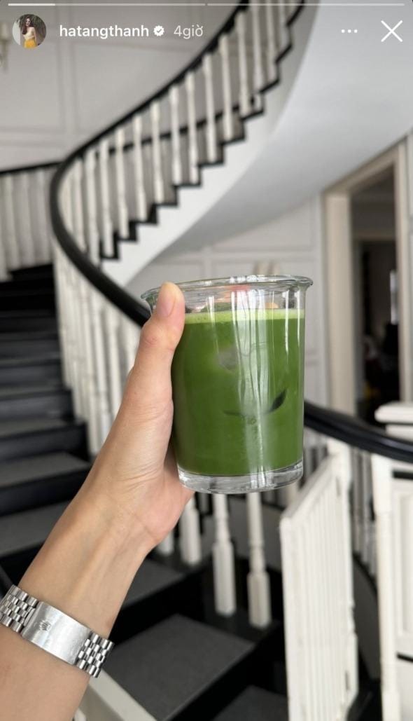 Nước ép cần tây là thức uống không thể thiếu trong thực đơn của Hà Tăng. Nó giúp thải độc, cải thiện tiêu hóa và bổ sung collagen cho da. Để dễ uống, cô thường mix cần tây với táo hoặc dứa.