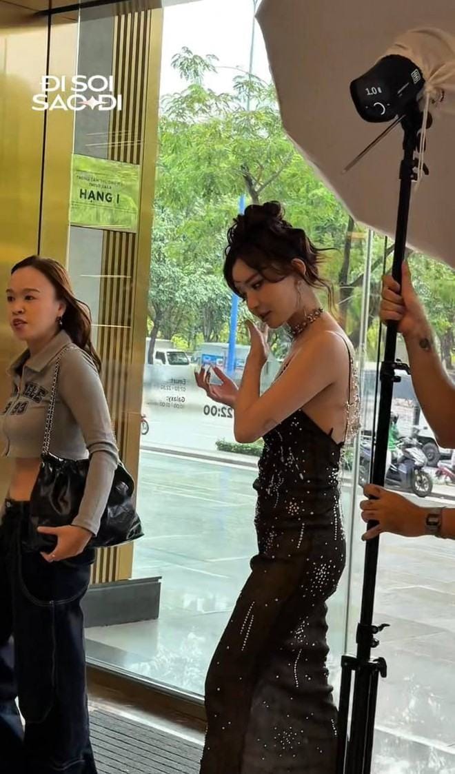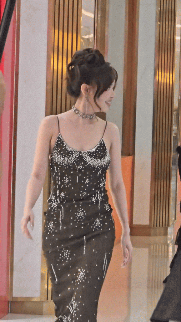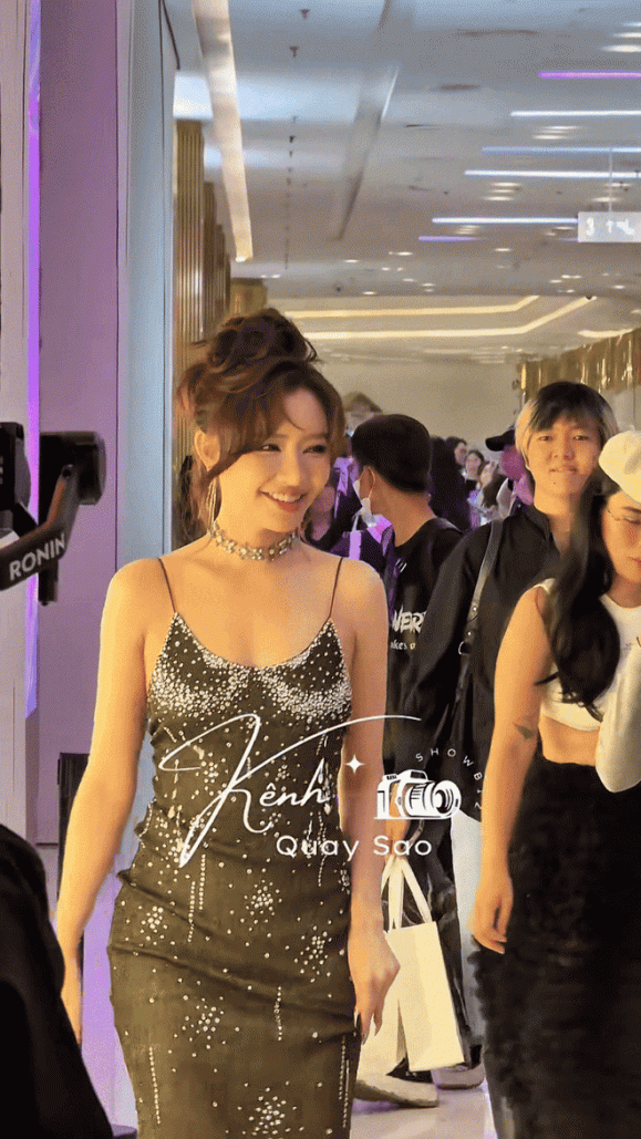 Xuất hiện trong bộ váy hai dây màu đen đính hạt, Bích Phương toát lên vẻ quyến rũ nhưng không tránh khỏi những ý kiến trái chiều về phong cách thời trang. Chiếc váy ôm dáng tôn vóc dáng nhưng lại bị cho là rườm rà, kết hợp cùng chiếc choker khiến tổng thể trở nên rối mắt. Kiểu tóc xoăn búi cao cũng vô tình ‘già hóa’ diện mạo của cô.