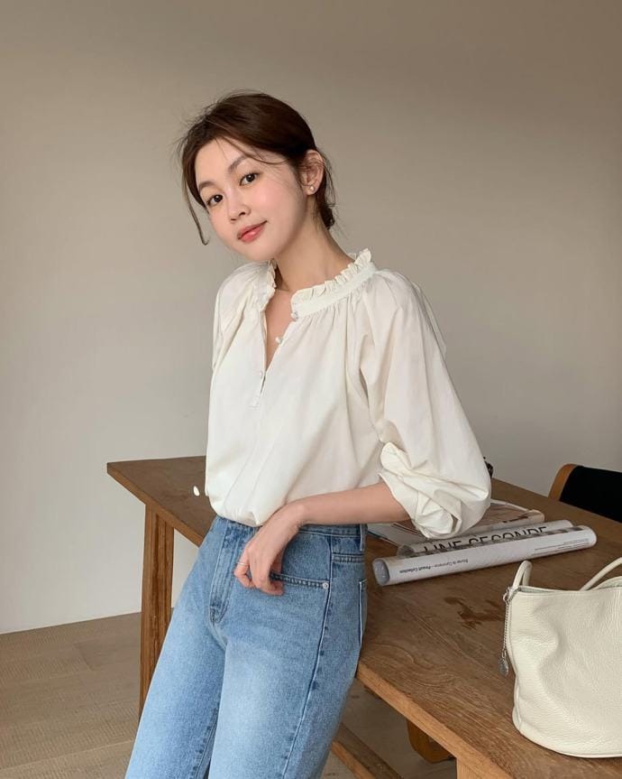 Mở một hoặc hai chiếc khuy áo trên cùng của áo sơ mi, blazer hoặc áo khoác là một trong những cách đơn giản nhất để làm mới diện mạo của bạn. Điều này không chỉ giúp bạn cảm thấy thoải mái hơn mà còn làm nổi bật vùng cổ và xương quai xanh – những điểm nhấn quyến rũ trên cơ thể. Thêm một chiếc dây chuyền mảnh hoặc vòng cổ đơn giản, bạn sẽ trở nên nữ tính và duyên dáng hơn bao giờ hết.