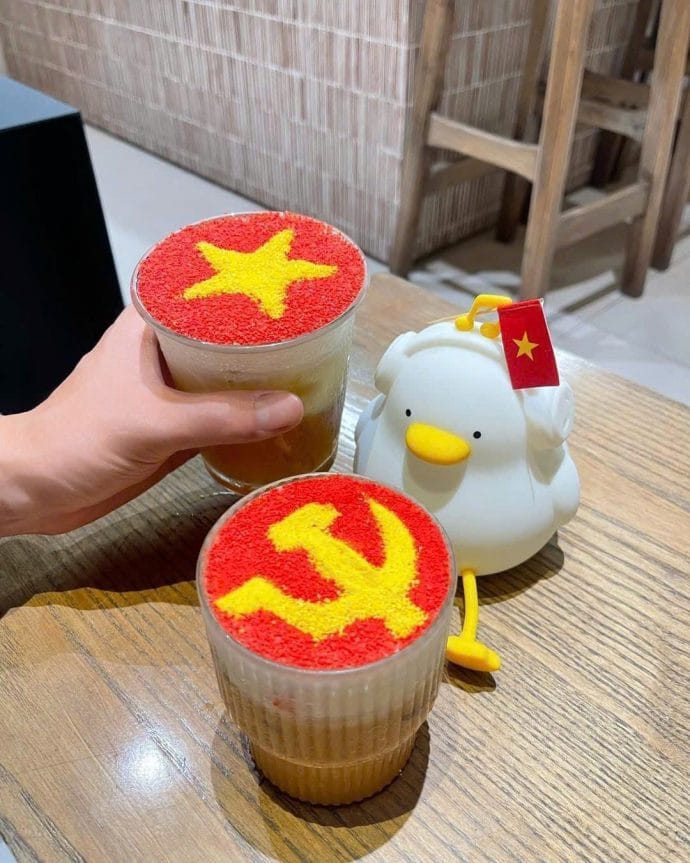 Nhân dịp kỷ niệm 50 năm Ngày Giải phóng miền Nam, thống nhất đất nước (30/4/1975 – 30/4/2025), hàng loạt quán cà phê tại Hà Nội, TP.HCM và nhiều thành phố lớn đã nhanh chóng bắt nhịp xu hướng “cà phê yêu nước”. Không gian quán được trang trí với các biểu tượng dân tộc như cờ đỏ sao vàng, bản đồ Việt Nam, cờ Đảng, kèm theo menu sáng tạo, khiến giới trẻ đổ xô check-in và doanh thu tăng vọt.