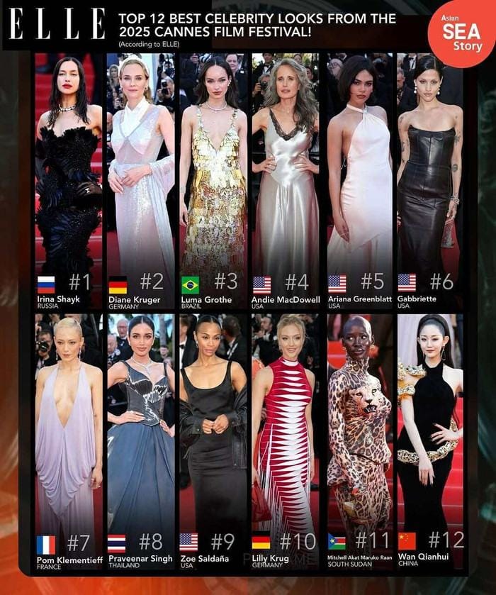 Veena Praveenar Singh, cựu Á hậu Hoàn vũ Thái Lan, và Wan Qianhui, mỹ nhân nhạc kịch gốc Trung, là hai đại diện châu Á duy nhất lọt vào top 12 sao nữ mặc đẹp nhất tại Cannes 2025. Trong khi Veena gây ấn tượng với phong cách thời trang táo bạo và tinh tế, Engfa Waraha lại khiến công chúng thất vọng với những lựa chọn “an toàn” và thiếu điểm nhấn.