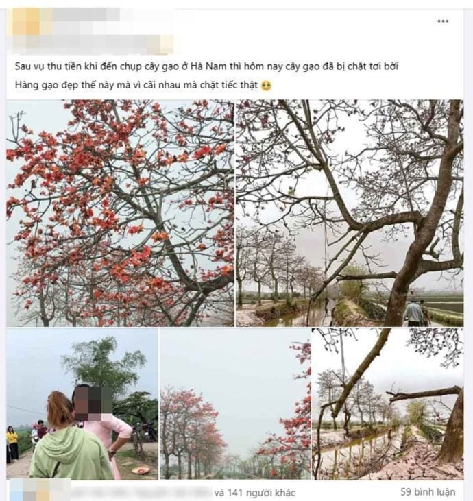 Một cây gạo đang nở hoa rực rỡ tại tổ dân phố Đoài (phường Tiên Nội, thị xã Duy Tiên, Hà Nam) đã trở thành tâm điểm của scandal khi bị chặt hạ sau vụ thu phí chụp ảnh gây tranh cãi. Sự việc bắt nguồn từ việc vợ chồng ông B.V.Đ. và con gái B.T.L. chặn xe, thu phí du khách đến chụp ảnh, dẫn đến cãi vã ồn ào.