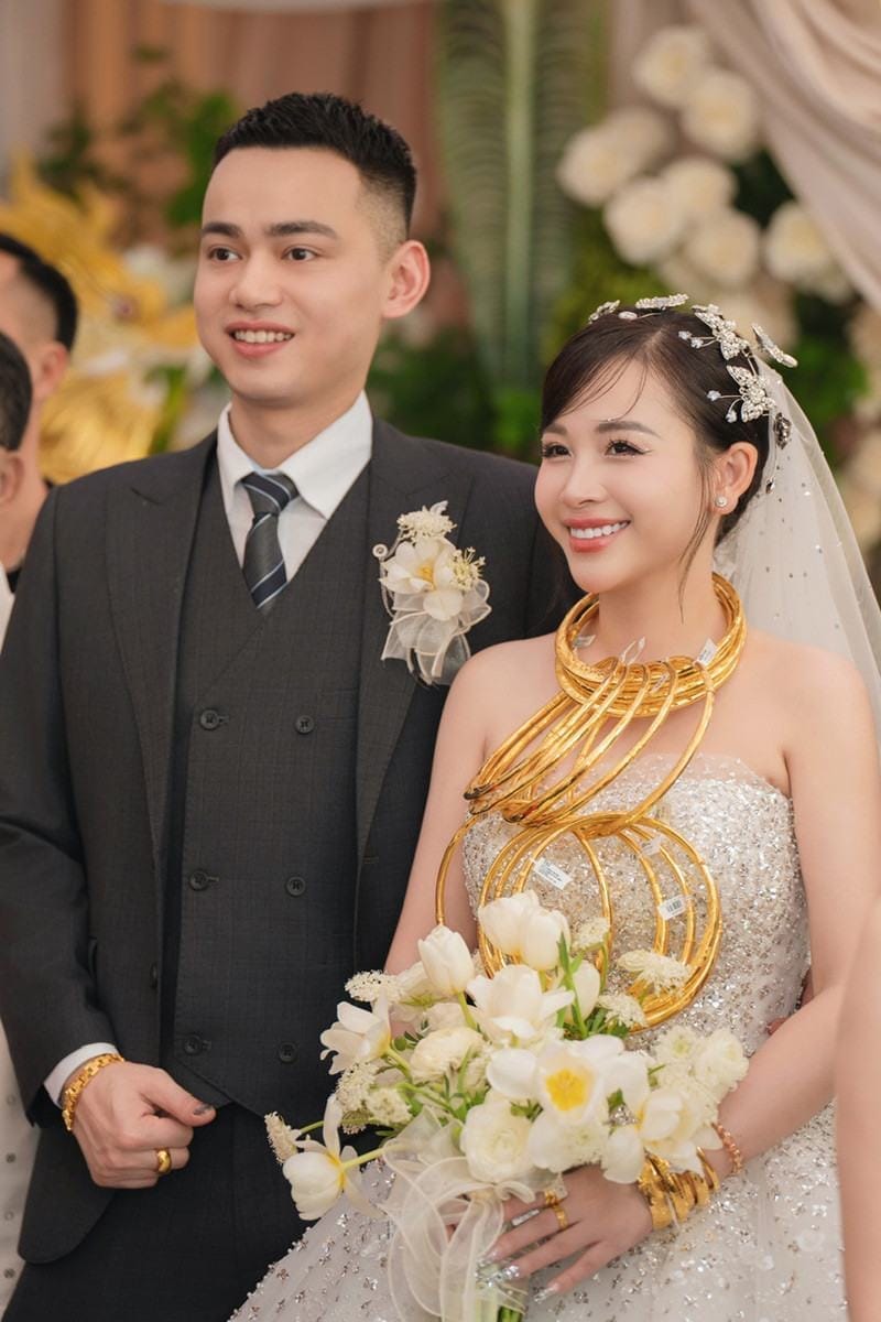 Trong những ngày gần đây, cộng đồng mạng không khỏi xôn xao trước hình ảnh một đám cưới “ngập vàng” tại Thanh Hóa. Cô dâu Nguyễn Thị Thùy Trang (sinh năm 1994) trở thành tâm điểm khi đeo hàng chục chiếc kiềng vàng trên cổ, thậm chí phải lồng chúng vào nhau vì số lượng quá nhiều. Không chỉ vậy, ngón tay và cổ tay của cô cũng được điểm xuyết bằng những chiếc nhẫn và lắc vàng lấp lánh.
