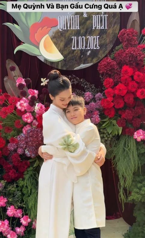 Đặc biệt, trong ngày vui, con trai lớn của Quỳnh Lương cũng xuất hiện. Bé Gấu, 11 tuổi, được khen ngợi là điển trai và cao lớn, luôn là chỗ dựa vững chãi cho mẹ. Ít ai biết rằng Quỳnh Lương đã từng kết hôn và ly hôn khi mới 20 tuổi, chọn cách làm mẹ đơn thân để nuôi dưỡng con trai.