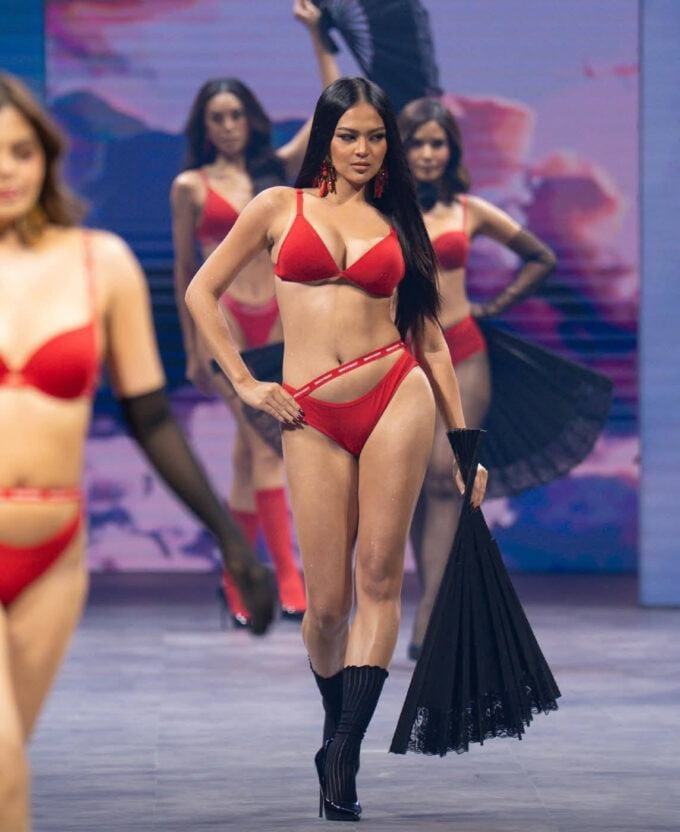 Đêm trình diễn Body of Work tại Philippines biến sàn catwalk thành lãnh địa của những nữ hoàng nội y. Michelle Dee, Hoa hậu Hoàn vũ Philippines 2023, thống trị sân khấu với bộ đồ lót đen quyến rũ, khiến khán giả phải thốt lên: “Đây chính là chuẩn mực của body đẹp!”