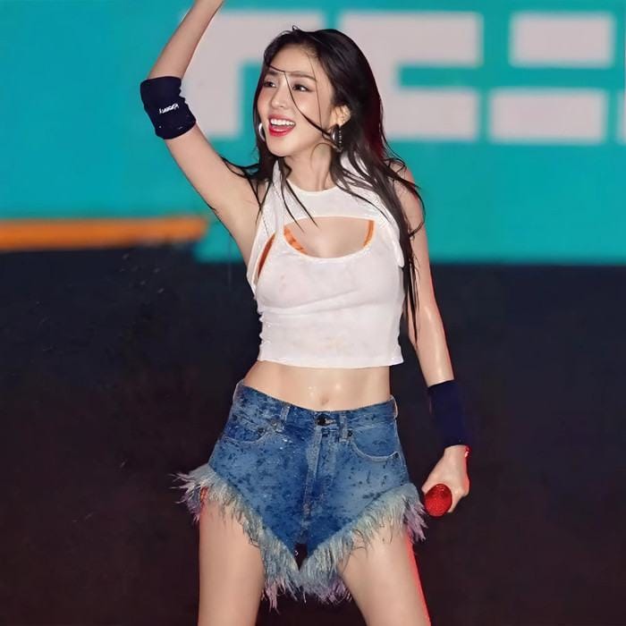 Trong trang phục crop top trắng ướt đẫm kết hợp quần denim siêu ngắn, Dara tự tin khoe đường cong cơ thể hoàn hảo. Cơ bụng nổi rõ cùng vòng eo thon gọn của cô khiến nhiều người không khỏi kinh ngạc. Đặc biệt, nụ cười tươi rói và năng lượng bùng nổ trên sân khấu càng khẳng định sức hút không tuổi của nữ nghệ sĩ.