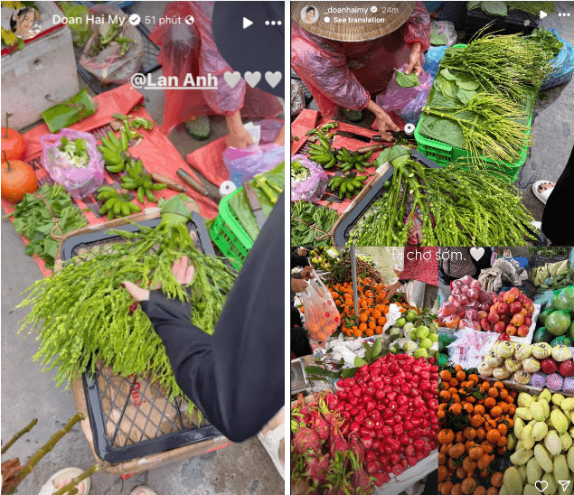 Dù là một ngôi sao sở hữu nhiều món đồ hiệu đắt giá, Doãn Hải My vẫn biết cách hòa nhập với cuộc sống thôn quê. Cô không ngại vào bếp, rửa bát hay cùng chị dâu đi chợ sớm. Tuy nhiên, chất “tiểu thư” vẫn lấp lánh qua từng chi tiết nhỏ, từ chiếc kính Gucci đến mũ bucket Burberry.
