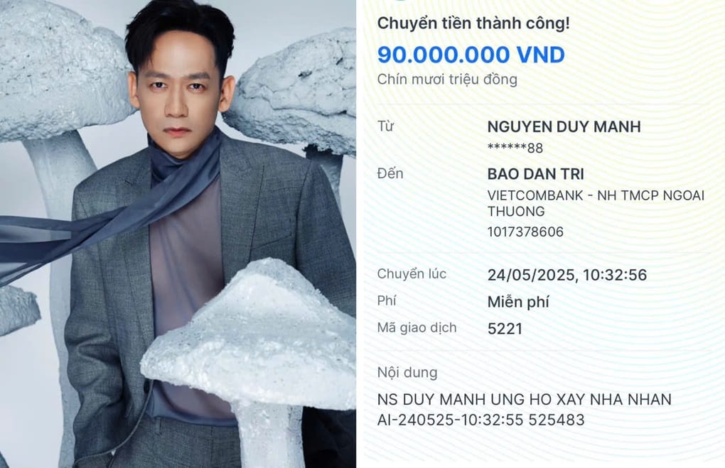 Giữa nhịp sống hối hả, những nghĩa cử cao đẹp vẫn luôn tỏa sáng. Ca sĩ Duy Mạnh vừa gửi đi một thông điệp ấm áp khi ủng hộ 90 triệu đồng vào dự án “Xây nhà Nhân ái” do báo Dân trí khởi xướng. Không chỉ là một khoản tiền, đó còn là tấm lòng sẻ chia với những mảnh đời còn nhiều khó khăn.