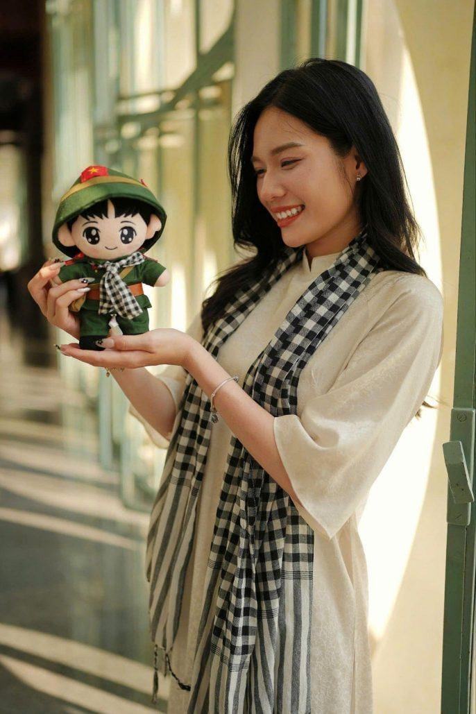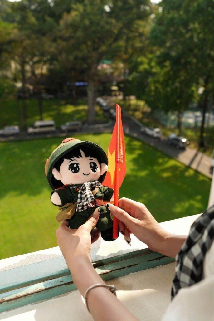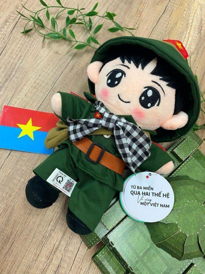 Chú gấu bông sở hữu tạo hình thân thiện với bộ quân phục xanh truyền thống, khuôn mặt hiền lành và đôi mắt đầy niềm tin. Đây không chỉ là vật trang trí mà còn là biểu tượng mềm mại nhưng đầy kiêu hãnh cho tinh thần Việt Nam.