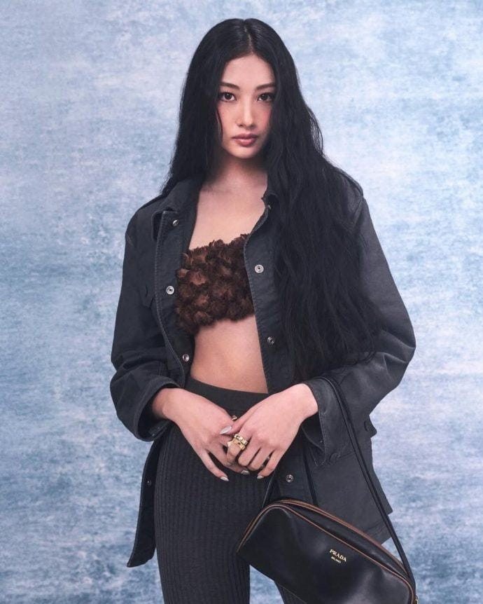 Trước nữ ca sĩ, nhiều gương mặt đình đám xứ Hàn từng được Prada lựa chọn gửi gắm vai trò đại sứ thương hiệu, có thể kể đến như Karina (aespa), Jaehyun (NCT), Sana (TWICE), Byeon Woo Seok hay nhóm nhạc ENHYPEN.