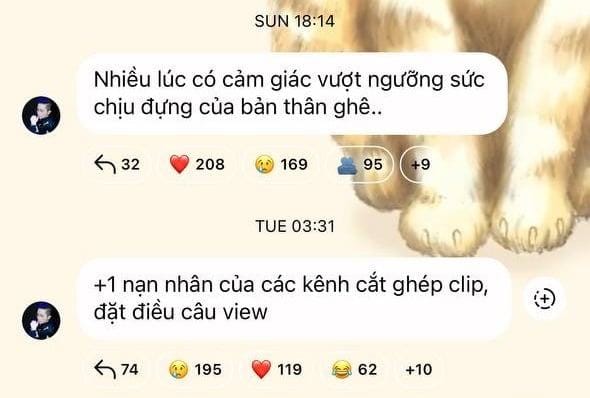 Giữa đêm khuya ngày 6/5, Gil Lê đã khiến fan lo lắng khi chia sẻ một dòng tin nhắn đầy tâm trạng: “+1 nạn nhân của các kênh cắt ghép clip, đặt điều câu view”. Dù không nói rõ nguyên nhân, nhưng những biểu tượng buồn và trái tim từ fan đã chứng minh sự đồng cảm dành cho cô.
