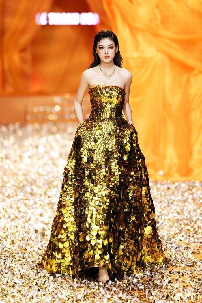 Không gian sân khấu như được phủ một lớp vàng lấp lánh khi show diễn ‘Golden Heritage’ chính thức khai màn, thu hút sự chú ý của hàng loạt ngôi sao đình đám. Từ những Hoa hậu quyến rũ như Ngọc Thảo, Lương Thùy Linh, Vũ Thúy Quỳnh đến các siêu mẫu hàng đầu như Thanh Hằng, Minh Tú, và sự trở lại đầy bất ngờ của Lan Khuê, tất cả đã tạo nên một đêm diễn không thể quên.