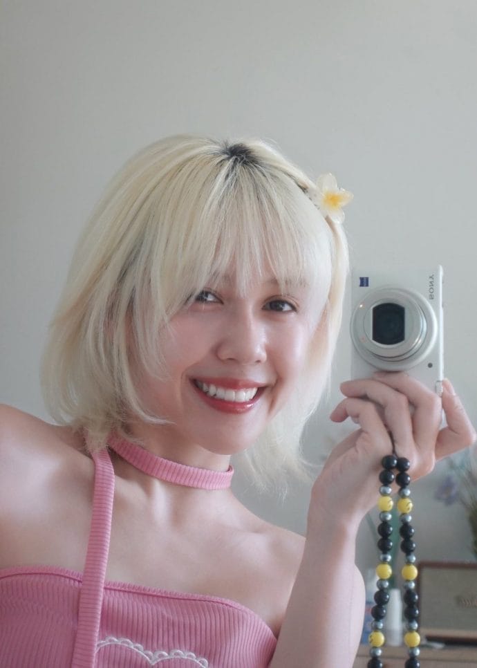 Không ngừng làm mới bản thân, Hậu Hoàng lại một lần nữa khiến cộng đồng mạng ‘đổ gục’ với mái tóc ngắn bạch kim cá tính. Trang phục dịu dàng, trẻ trung cùng thần thái rạng rỡ, cô khiến ai nấy đều phải thốt lên: “Trẻ và xinh quá đồng chí Thuý Hậu!”.
