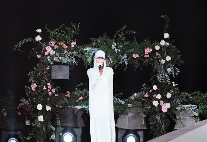 Bên cạnh phần biểu diễn, Hồ Ngọc Hà còn gây chú ý với phong cách thời trang lạ mắt. Nữ ca sĩ chọn diện một thiết kế kín đáo với phần cổ cao, tay dài và tông màu trung tính. Bộ trang phục nhanh chóng trở thành đề tài bàn tán trên mạng xã hội, khi nhiều khán giả hài hước ví von đây là phiên bản “áo chống nắng” thời thượng.