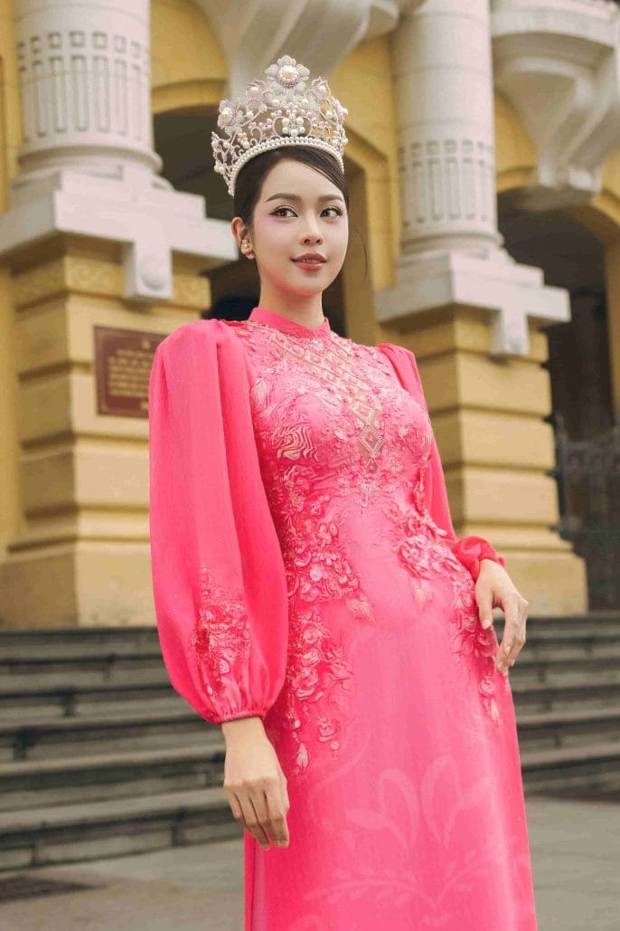 Trên nền kiến trúc cổ kính, mỗi tà áo dài như một nhịp cầu kết nối du khách với văn hóa bản địa. Thanh Thủy, với vai trò “nàng thơ”, đã thổi hồn vào từng thiết kế, khiến chúng trở nên sống động và đầy cảm xúc.