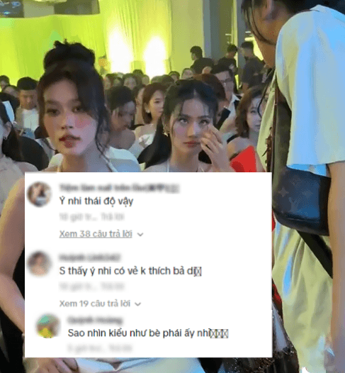 Trong đoạn video, Hoa hậu Thiên Ân tiến đến chỗ ngồi bên cạnh Ý Nhi. Thế nhưng, thay vì một cái ôm hay nụ cười thân thiện, Ý Nhi chỉ khẽ ngước nhìn với ánh mắt lạnh lùng, không một lời chào. Khoảnh khắc này ngay lập tức trở thành tâm điểm bàn tán: Liệu có phải mối quan hệ giữa hai người đang “cơm chẳng lành, canh chẳng ngọt”?