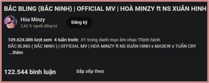 Không chỉ là một MV, Bắc Bling của Hòa Minzy đã trở thành hiện tượng khi chính thức vượt mốc 100 triệu lượt xem trên YouTube. Đây không chỉ là dấu mốc đáng nhớ trong sự nghiệp của nữ ca sĩ mà còn là minh chứng cho sức hút không thể phủ nhận của cô trong làng nhạc Việt.