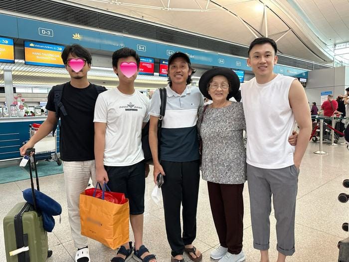 “Hôm nay cả nhà em chộn rộn tiễn mẹ ra sân bay về Mỹ. Giờ em mới nhận ra làm Út sướng thiệt, khi có anh em là em cứ việc ngồi im”, Dương Triệu Vũ hài hước chia sẻ. Chuyến bay bắt đầu lúc 7 giờ tối, nhưng từ 3 giờ chiều, bà đã đòi ra sân bay dù nhà chỉ cách đó không xa.