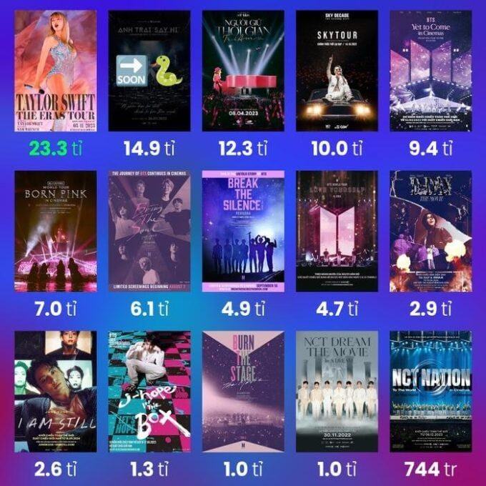 So sánh doanh thu các phim tài liệu âm nhạc tại Việt Nam