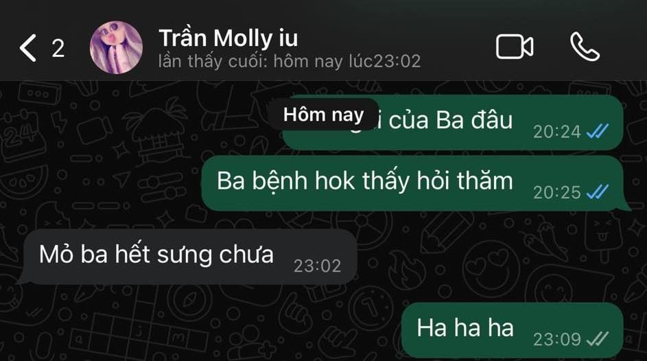 Không chỉ nhận được sự quan tâm từ người hâm mộ, Huy Khánh còn nhận tin nhắn dễ thương từ con gái. Khi được hỏi: “Ba bệnh không thấy hỏi thăm”, cô bé hài hước đáp: “Mỏ ba hết sưng chưa”. Câu trả lời khiến nam diễn viên phải thốt lên: “Tức cô bé này quá!”.