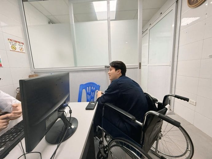 Trên trang cá nhân, bà xã Bạch Lan Phương không giấu nổi sự xót xa khi chia sẻ hình ảnh chồng phải di chuyển bằng xe lăn: “Vượt mức Pickleball rồi anh em ạ, vợ thì sứt mũi, chồng thì đi bằng nạng thế này. Anh em nhớ khởi động kỹ trước khi vào sân nhé”.