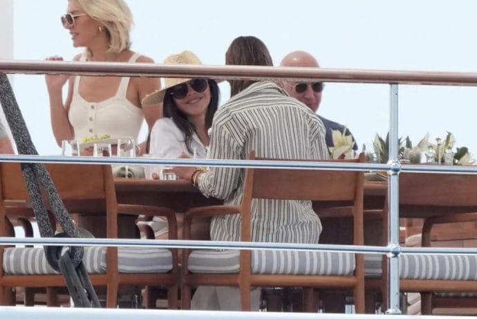 Không chỉ dừng lại ở những khoảnh khắc thư giãn, cặp đôi còn khiến người hâm mộ “tan chảy” với những cử chỉ ngọt ngào. Jeff Bezos nhẹ nhàng hôn lên má Lauren, trong khi cô nàng tựa đầu vào vai chàng tỷ phú với nụ cười rạng rỡ. Sau đó, họ cùng nhau thưởng thức bữa tối lãng mạn trên du thuyền cùng bạn bè.