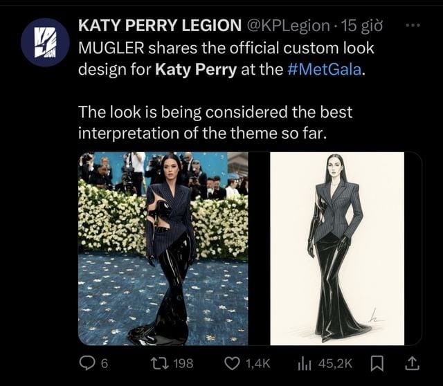 Met Gala 2025 với chủ đề “Superfine: Tailoring Black Style” đã khép lại, nhưng cơn sốt từ sự kiện này vẫn chưa hạ nhiệt. Trong khi dân tình còn đang mải mê bàn tán về những bộ cánh đình đám, thì một cú twist không tưởng đã khiến ai nấy phải ngã ngửa: Katy Perry, ngôi sao vốn nổi tiếng với những màn trình diễn ấn tượng, lại “xuất hiện” tại Met Gala nhờ công nghệ AI!