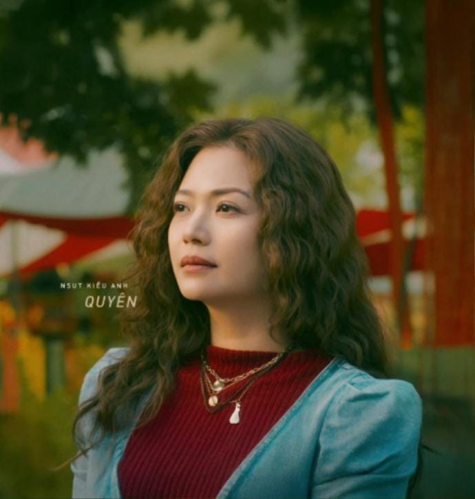 Trong phim, Quyên là một phụ nữ từng bỏ con trai để đi nước ngoài, 16 năm sau mới trở về tìm lại đứa con. Kiều Anh tiết lộ, nhân vật này trải qua hai giai đoạn: thời trẻ nghèo khổ và khi trở về với phong cách sành điệu nhưng không quá giàu có. Một trong những phân cảnh ám ảnh nhất là khi Quyên gửi con trai cho người khác và biến mất suốt nhiều năm.