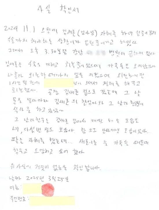K thẳng thừng bác bỏ tin đồn liên quan đến Kim Soo Hyun: “Sae Ron chết vì bạo hành chứ không phải vì mối tình cũ. Thật trớ trêu khi người thân vắng mặt suốt cuộc đời cô ấy, giờ lại đứng lên đổ lỗi cho một ngôi sao chỉ vì họ muốn chút ánh hào quang”. Anh thậm chí không ngại điểm chỉ vân tay vào bản tường trình như lời thề về sự thật.