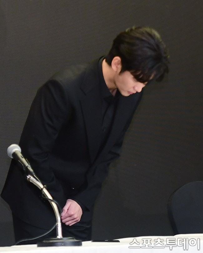 Cuối buổi họp báo, Kim Soo Hyun cúi đầu xin lỗi trước truyền thông và khẳng định những tin đồn về việc anh phớt lờ hay công ty gây áp lực khiến Kim Sae Ron tự tử là hoàn toàn vô căn cứ.