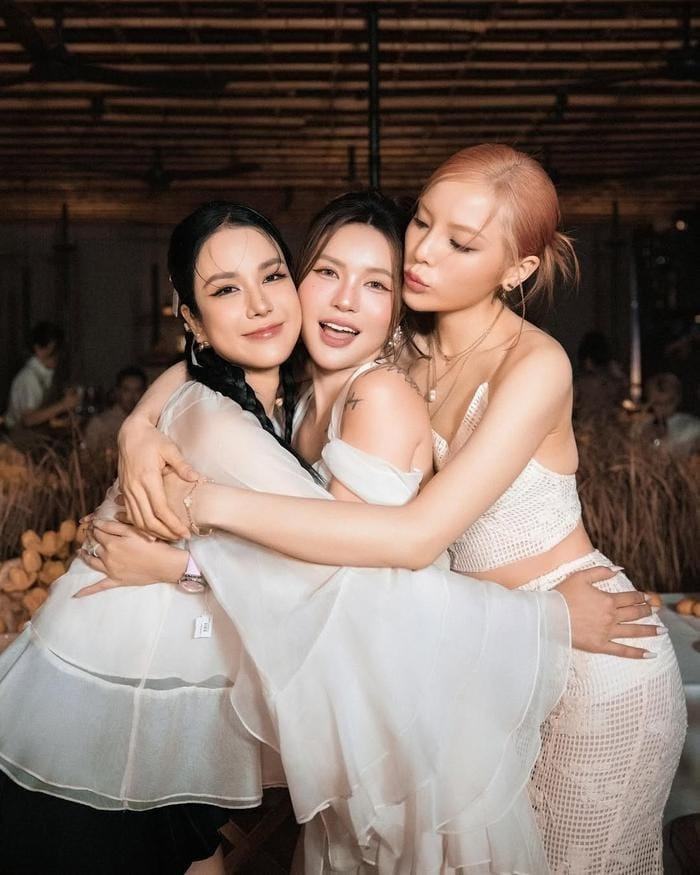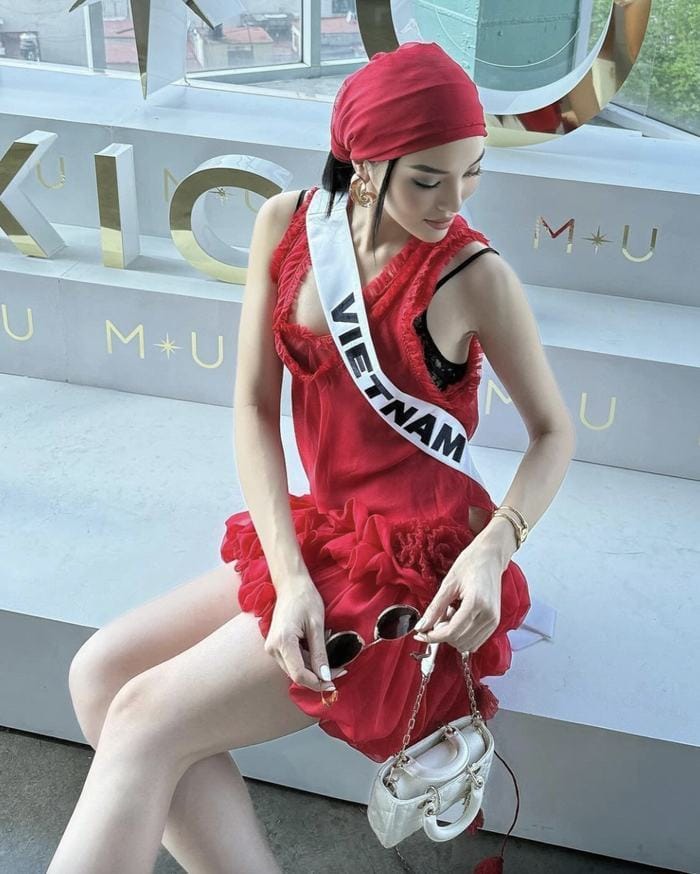 Không chỉ là một người bạn thân thiết, Hoa hậu Kỳ Duyên còn khiến Lucie Nguyễn và cả khách mời ‘đỏ mặt’ với màn xuất hiện đầy táo bạo. Nàng hậu chọn set đồ 2 mảnh tông trắng, kết hợp giữa áo croptop và chân váy dài, nhưng điểm nhấn lại nằm ở chất liệu xuyên thấu, vô tình để lộ nội y gây ‘bỏng mắt’.