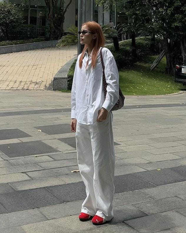 Chiếc sơ mi trắng phối cùng áo cao cổ bên trong, kết hợp với quần jeans và những phụ kiện nhỏ như đồng hồ, dây chuyền, đã tạo nên một tổng thể vừa năng động vừa thời thượng. Netizen không ngần ngại dành lời khen cho phong cách menswear mạnh mẽ của cô.