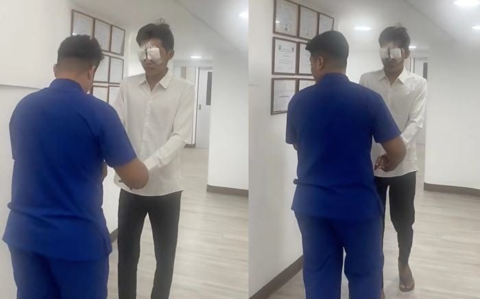 Lai Thai, thí sinh cuộc thi Nam vương Campuchia 2025, một lần nữa khiến cộng đồng mạng xôn xao khi đăng tải hình ảnh với đôi mắt băng bó sau ca phẫu thuật thẩm mỹ. Được người thân dìu đi trong trạng thái yếu ớt, anh chàng như muốn khẳng định quyết tâm thay đổi diện mạo của mình.