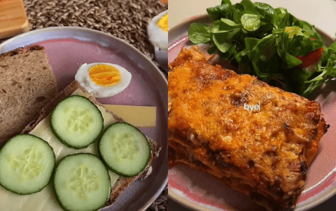 Chế độ ăn của Lealii cũng đơn giản nhưng hiệu quả. Cô không đếm calo mà tập trung vào thực phẩm tự nhiên. Bữa sáng với bánh mì sourdough, dưa chuột và trứng luộc; bữa trưa là bánh chuối chiên sốt táo; bữa tối với lasagne tự làm và salad. Cô không kiêng khem mà chọn ăn uống lành mạnh.