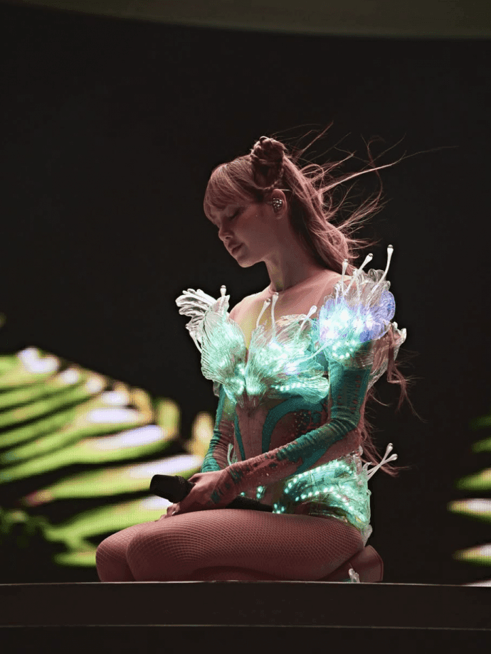 Lần thứ 3 biểu diễn tại Coachella, Lisa khiến khán giả “đứng hình” với bộ đồ tua rua phát sáng, kết hợp cùng chi tiết hoa văn trong suốt. Tuy nhiên, phần thiết kế bị đánh giá là quá ngắn và táo bạo, dễ gây phản cảm.