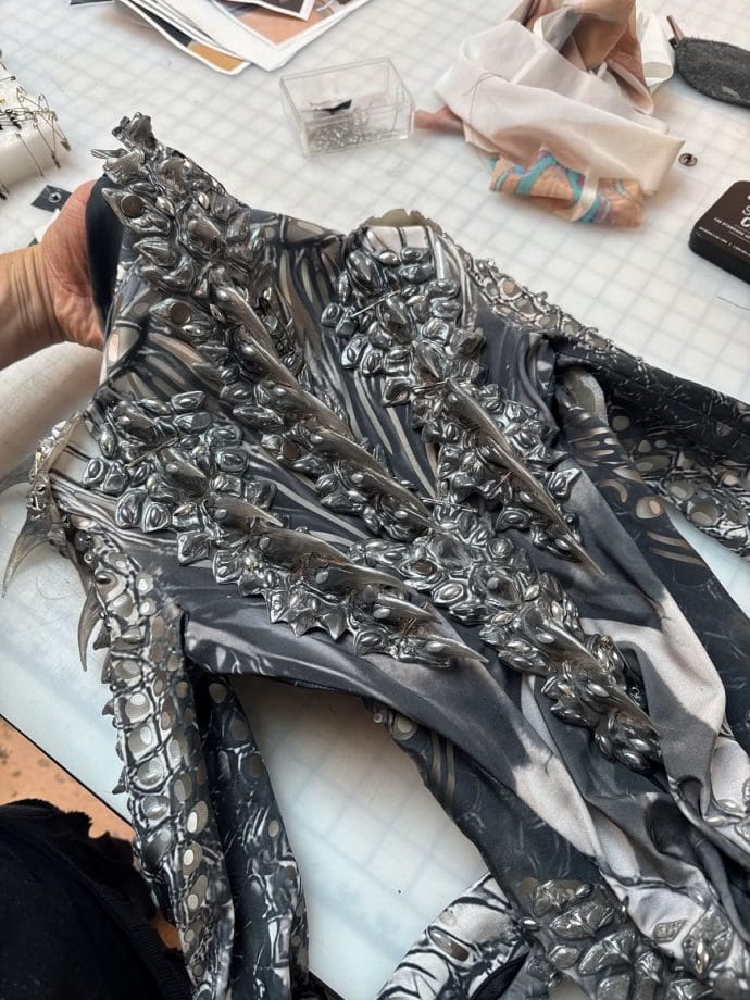 Asher Levine, nhà thiết kế đứng sau những bộ trang phục này, tiết lộ rằng anh đã sử dụng AI để tối ưu hóa quy trình sáng tạo. Mỗi thiết kế được chế tác từ vật liệu cao su hoặc nhựa in 3D, dựa trên bản quét cơ thể của Lisa để đảm bảo độ ôm sát tuyệt đối.