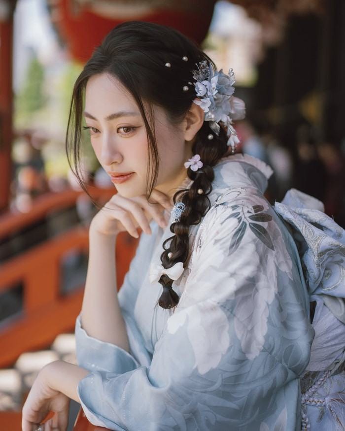 Trong bộ ảnh, Lương Thùy Linh lựa chọn phong cách trang điểm nhẹ nhàng, tập trung vào làn da sáng mịn và đôi mắt sâu thẳm. Mái tóc đen được tết gọn gàng, điểm xuyết bằng phụ kiện hoa cài thanh nhã, càng tôn lên vẻ dịu dàng, nữ tính. Tất cả hòa quyện hoàn hảo với thiết kế Kimono tinh tế, mang màu sắc trang nhã.