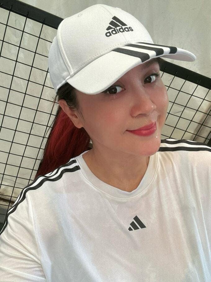 Lưu Thiên Hương chơi pickleball hàng ngày để duy trì sức khoẻ.