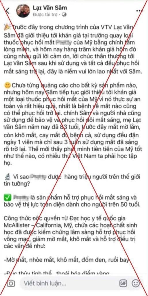 MC Lại Văn Sâm, một gương mặt quen thuộc của truyền hình Việt, vừa lên tiếng về việc bị kẻ xấu lợi dụng hình ảnh để quảng cáo thuốc bổ mắt. Những thông tin sai lệch như “anh từng quảng cáo sản phẩm trên VTV” hay “mẹ anh dùng thuốc và khỏi bệnh” đã khiến không ít khán giả tin theo.