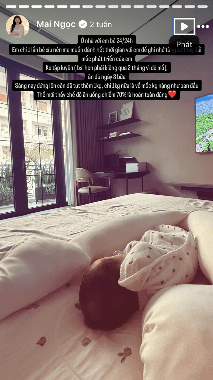Trong dịp đặc biệt này, Mai Ngọc không giấu được niềm hạnh phúc khi lần đầu tiên công khai hình ảnh cùng con trai. Cô diện trang phục nhẹ nhàng, gương mặt rạng rỡ đón nhận những lời chúc mừng từ bạn bè và người thân. Đáng chú ý, cô còn chia sẻ bí quyết giảm 8kg chỉ sau 18 ngày sinh con, khiến nhiều người ngưỡng mộ.